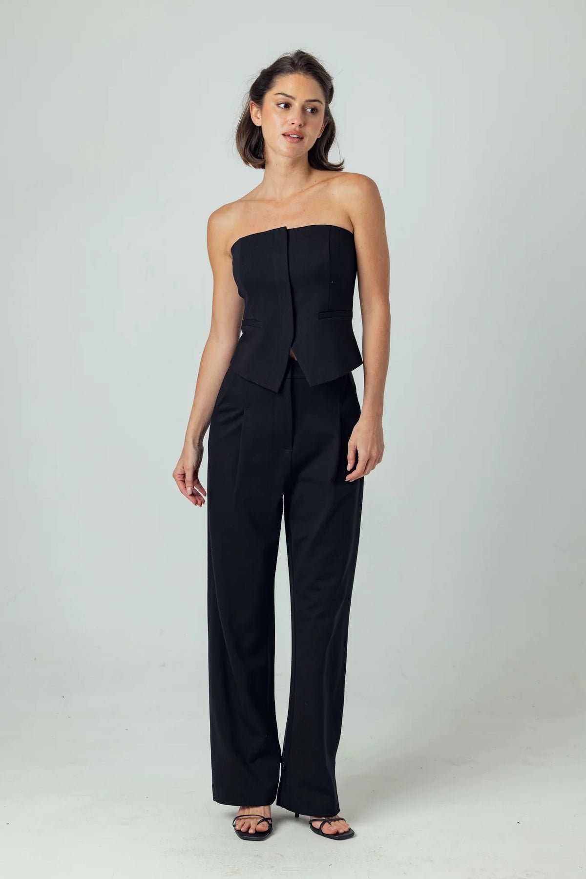 The Arlin Top is made in Sundays super Lux material for a structured yet refined feel. Fitted through the bust with a subtle peplum at the waist, it features a covered front zip closure and a clean V-slit at the hem. Faux side pockets lend a tailored touch. Effortless on its own, it pairs seamlessly with the Averilie Pant for a polished set.